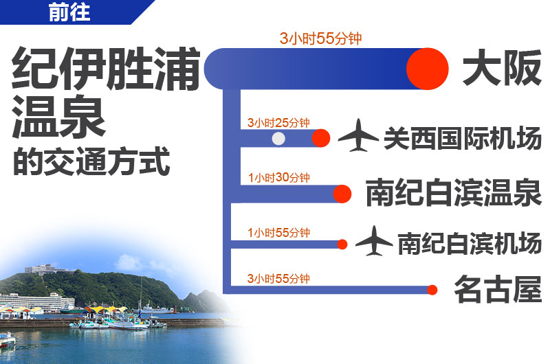 请使用这份交通指南,找出前往纪伊胜浦温泉的最佳交通方式!如果从关西国际机场,大阪及名古屋前往纪伊胜浦地区,有特急列车…