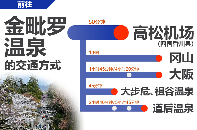 请使用这份交通指南,找出前往金毗罗温泉的最佳交通方式!如果从高松机场前往金毗罗地区,有机场巴士,如果从冈山及大步危…