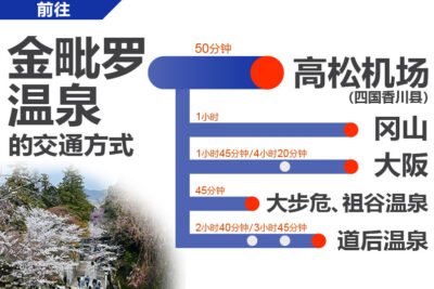 请使用这份交通指南,找出前往金毗罗温泉的最佳交通方式!如果从高松机场前往金毗罗地区,有机场巴士,如果从冈山及大步危...