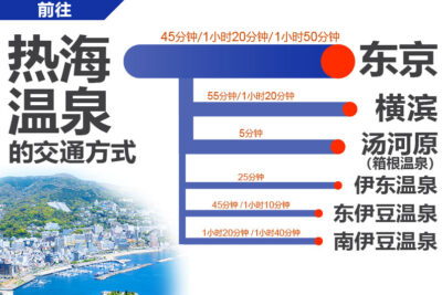 请使用这份交通指南,找出前往热海温泉的最佳交通方式!如果从东京站、品川站及横滨站前往热海地区,有JR新干线或直达特急列车...
