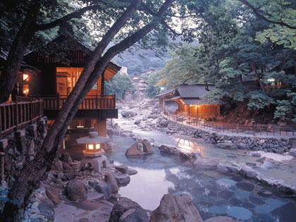 这所温泉旅馆位于离开草津温泉中心区的山岗上,整座建筑物的地板都铺上了榻榻米,情调高雅。以和室(传统日式房间)为主的客房共有64间,全部房间都附设露天温泉风吕。公众大浴堂共有23种不同浴池(包括露天风吕)…