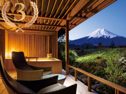 全客房带有露天温泉并能观赏富士山。在充满高级感的现代日式房间中可以独自享有富士山。从大浴池看到的一览无余的富士山景观也是绝佳的。还能在姊妹旅馆内享受包租温泉和大浴场。