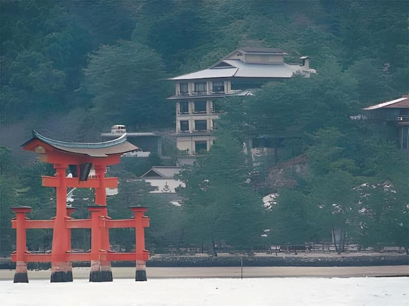 该旅馆内的所有浴池使用並非温泉水的热水。不过,此旅馆位于宫岛市内充满大自然的地方,从浴池能眺望到美丽的景色,还提供美味的菜肴,广受好评。